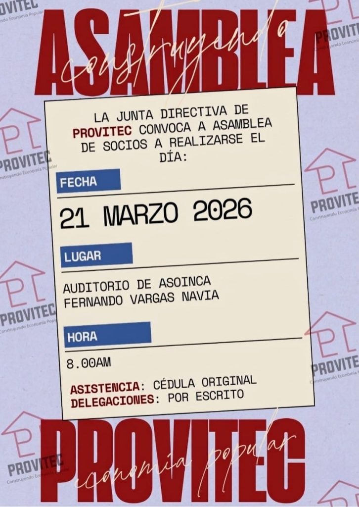 🚨 La primera asamblea general de socios del año 2026 para los afiliados a PROVITEC se va a desarrollar así: